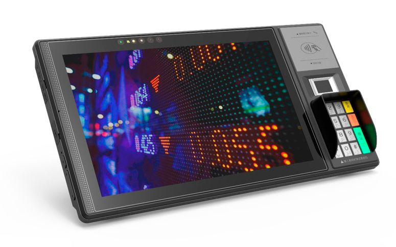 符合IP54设计规范,造型俊朗,坚固耐用;背面特设活动支架,可满足移动展业和桌面式业务办理的需求,为办公提供人性化便利。